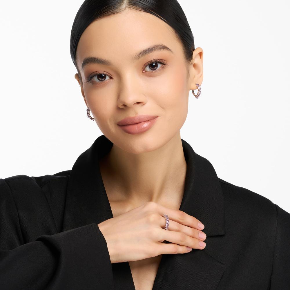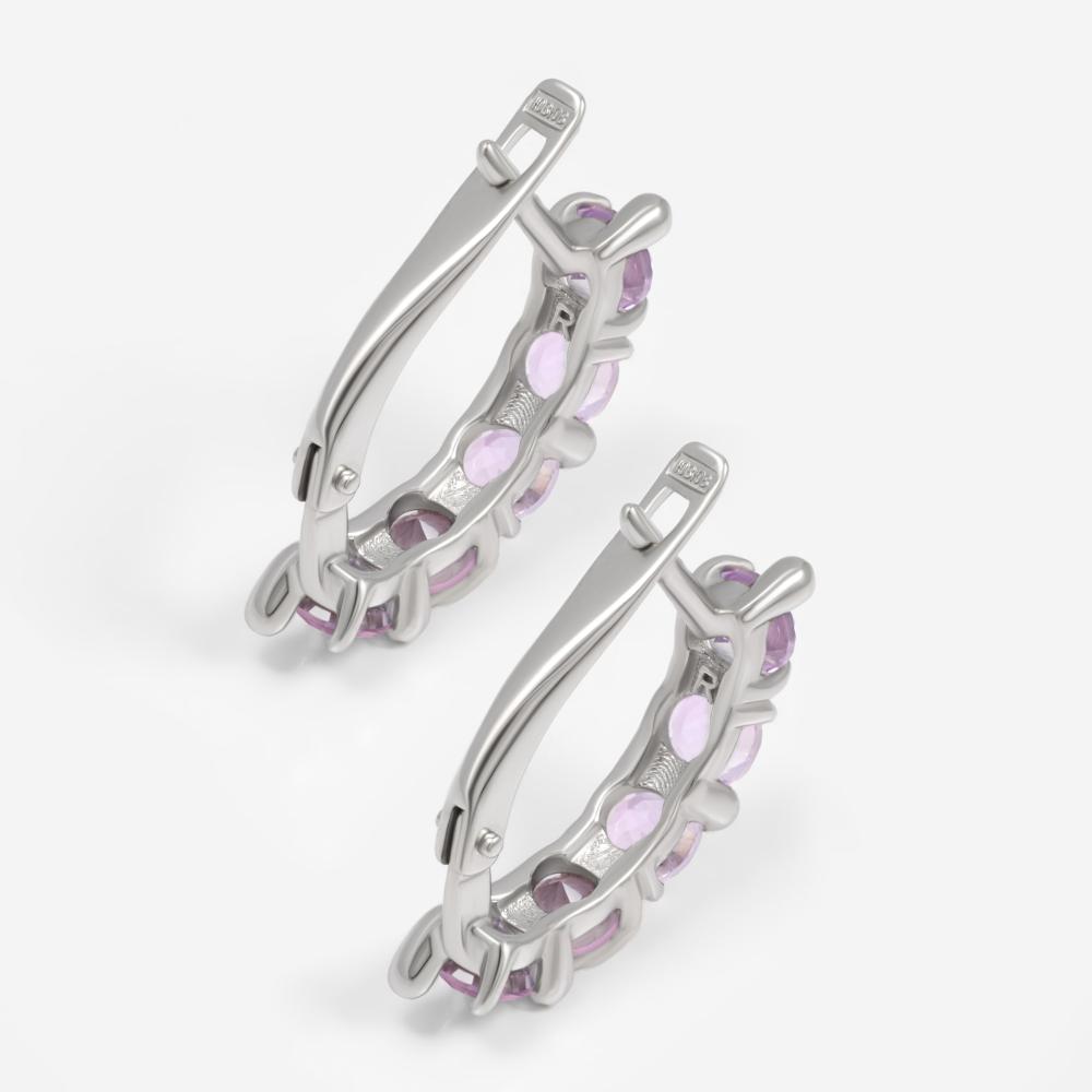 Если хочется подчеркнуть прелесть фиолетовой вставки с помощью аристократичных комбинаций, обратитесь к бриллиантам, фианитам, циркону или горному хрусталю. Россыпь прозрачных искрящихся кристаллов совершенно волшебно оттеняют глубокий оттенок аметиста, добавляя ему особенного сияния и выразительности.